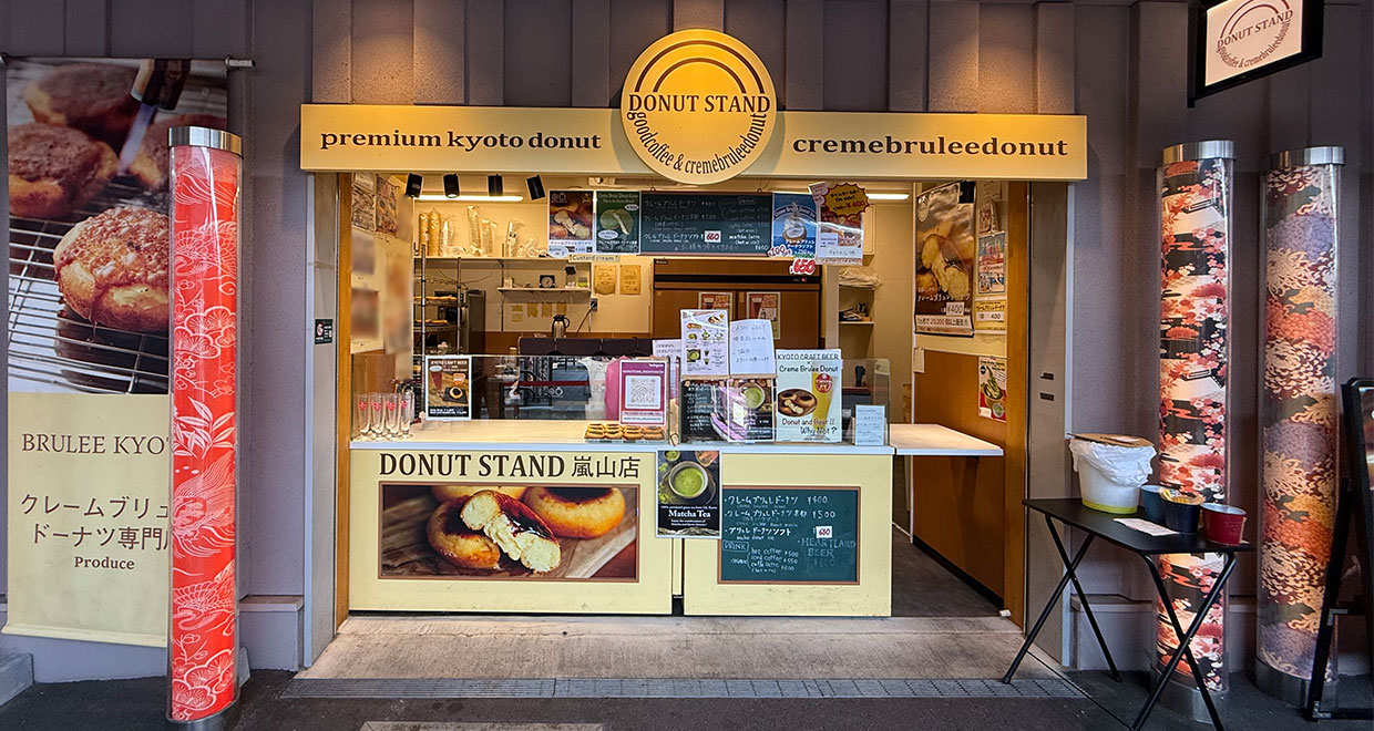 京都有数の観光スポット 嵐山エリアにある、新食感スイーツ“クレームブリュレドーナツ”のお店「DONUT STAND 嵐山店」。